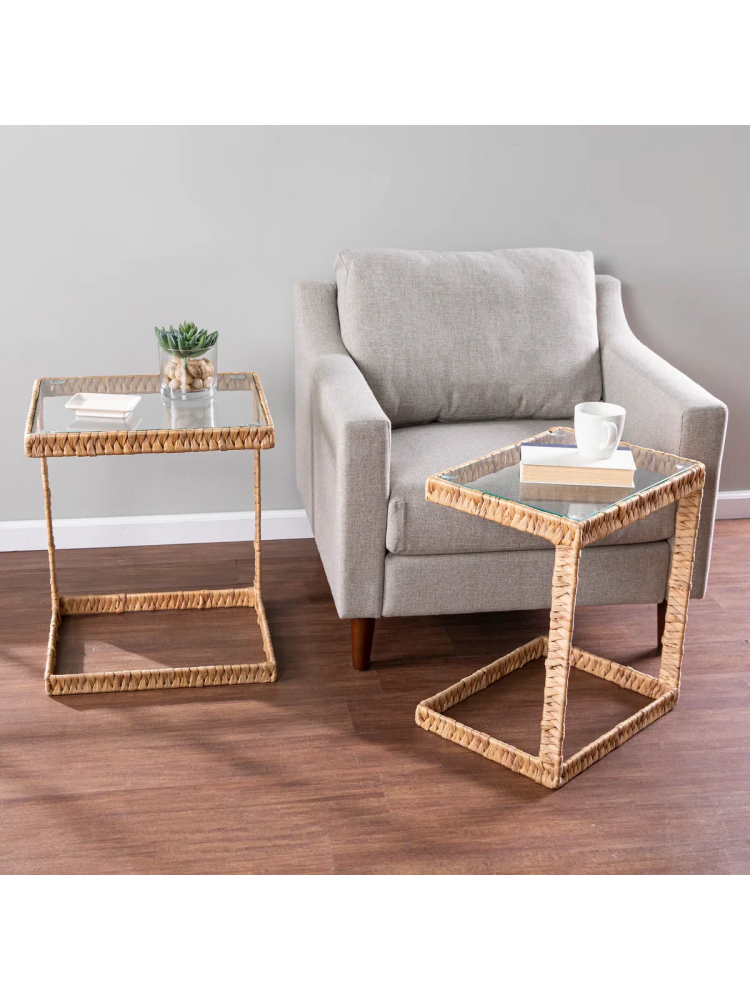 • Bring home style and functionality with this nesting C table set. Woven water hyacinth creates a coastal feel while the minimalist design keeps your living space uncluttered.
