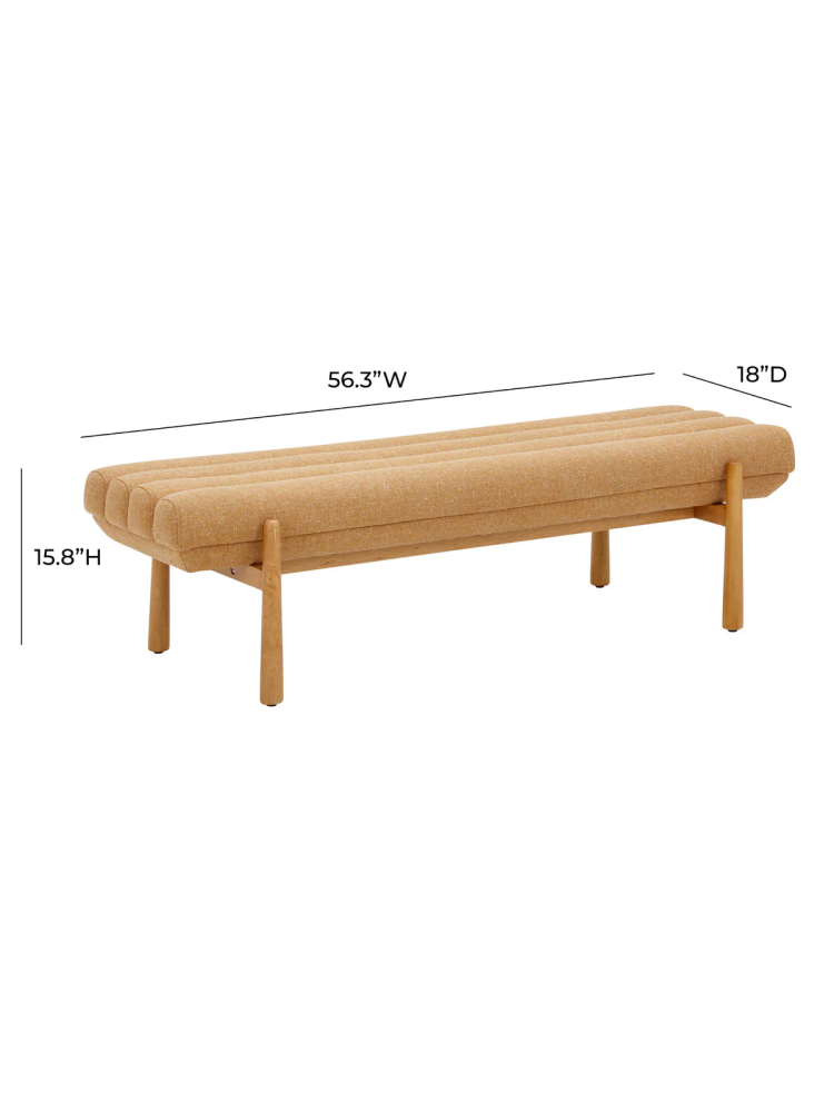 • The Sunflower Yellow Heavy Linen Bench is here to brighten your day, boasting a solid wood frame for lasting stability and durability. Crafted with performance linen blend fabric, this bench effortlessly combines Danish style with a textured touch, bringing its sunny disposition wherever you place it.
